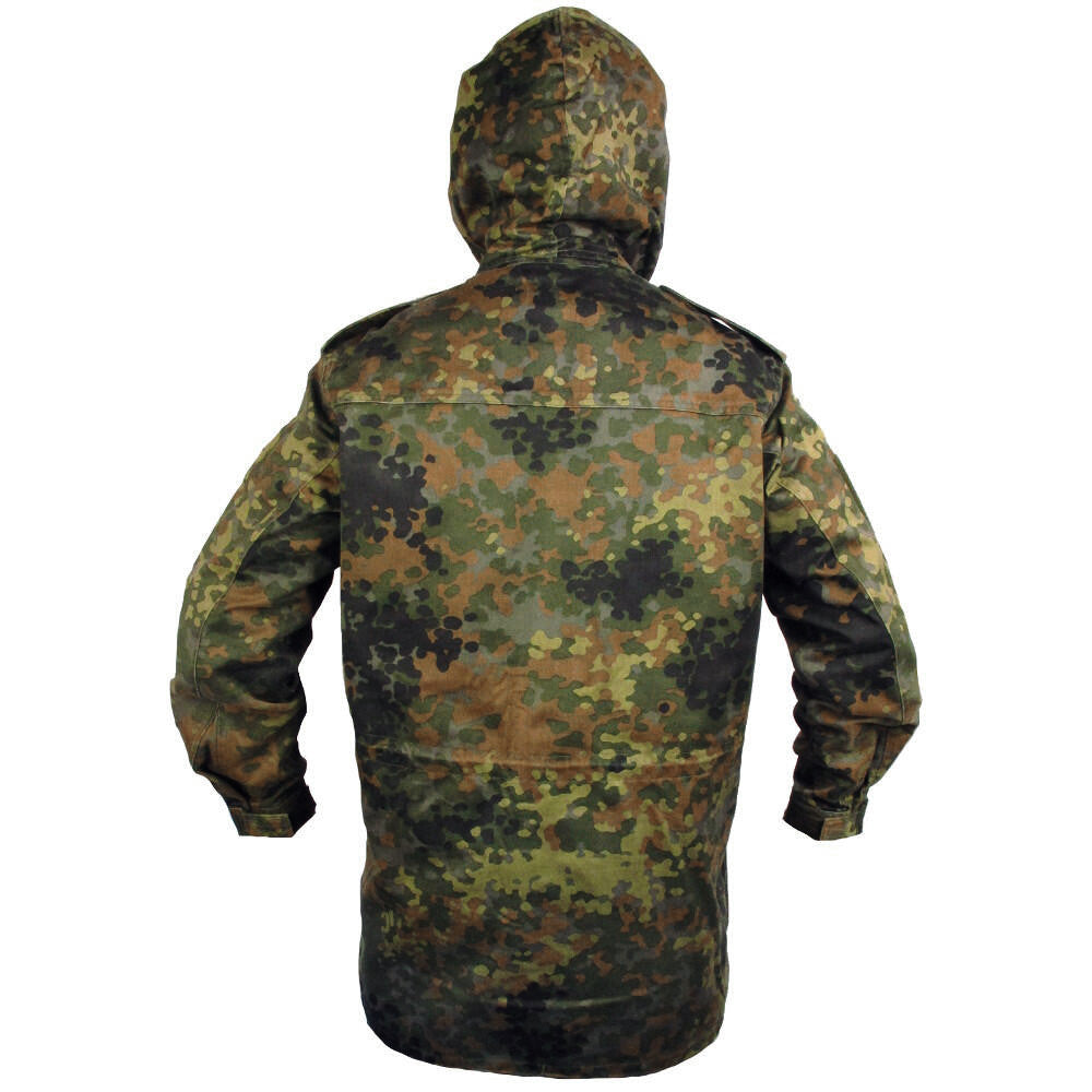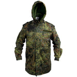 Germany's awesome flecktarn camo pattern, slapped onto a great quality parka. Although it doesn't come with the removable insert liner like our other German Parka it's still a fantastic over-jacket with an array of pockets. The perfect jacket for hunters and campers. This jacket brings style and comfort to the table whilst giving cold weather protection.