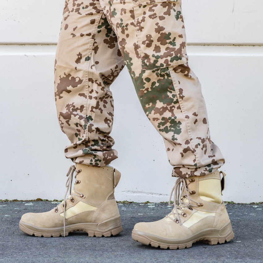 These Bundeswehr (German Army) desert boots are exactly what you would expect quality wise - however for a 'desert' boot they have a few surprises. The designers must of had Afghanistan in mind when designing these as they have a lightweight waterproof Gore-Tex® lining. Environments like Afghanistan have a huge amount of variation in climate from scorching desert to freezing snow. These boots cover them all.