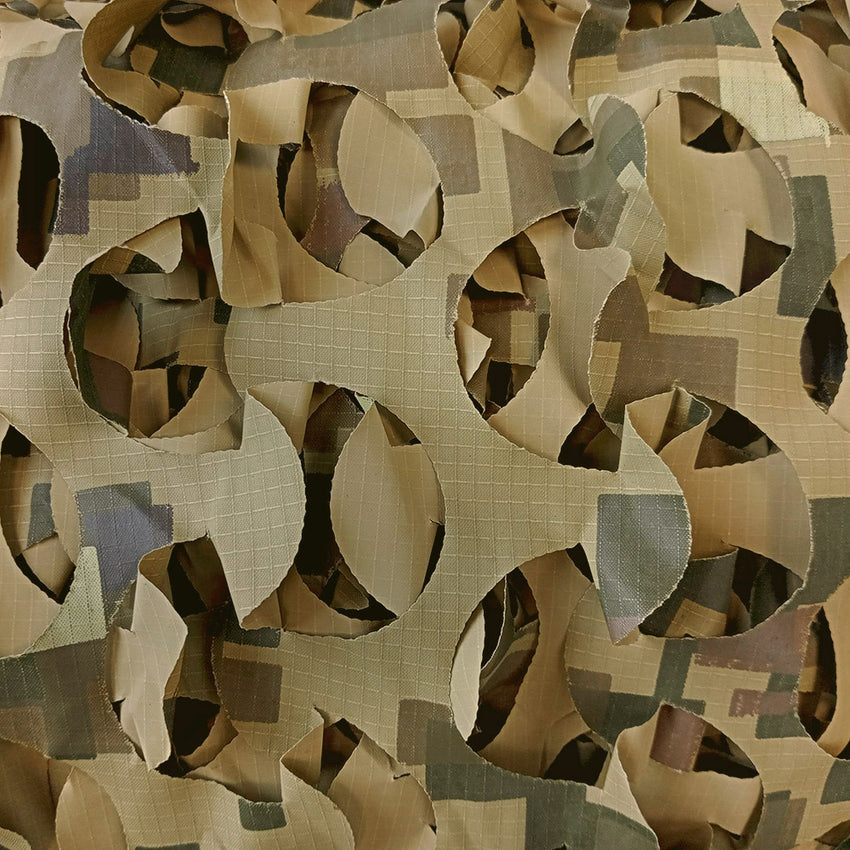 Camo Systems Specialist series ultra-light, heavy-duty rip-stop camouflage netting, per metre. This lightweight, strong, durable netting is additionally treated to provide a non-glare cover in the field while remaining quiet and rustle-free. This camo netting is for outside use only and is not fire rated.