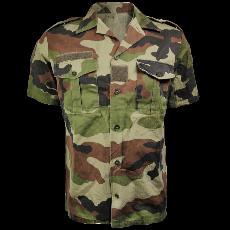 In the 1990's, the French military released this universal camouflage pattern for use in Europe—which they ingeniously named "Centre Europe" (CE). Now you can get this pattern on a genuine issue short-sleeve shirt! This shirt is made from a light-mid weight, cotton based fabric to keep you cool during summer and hot weather activities. The colours can vary with manufacture and age, as shown in the picture.