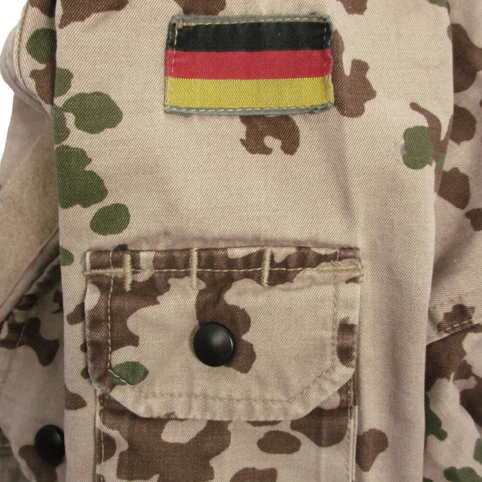 The German Army's choice of camouflage in arid/desert regions is the 3 colour Tropentarn pattern. The official name is drei Farben Tarndruck der Bundeswehr (three color camouflage of the Bundeswehr). Based on the established Flecktarn pattern, the Tropentarn is another popular camouflage pattern from the German army. This field shirt is comfortable, hardwearing and practical. Underarm ventilation is a highlight of these shirts and proves an ideal choice of battle attire for high humidity/warm climates.