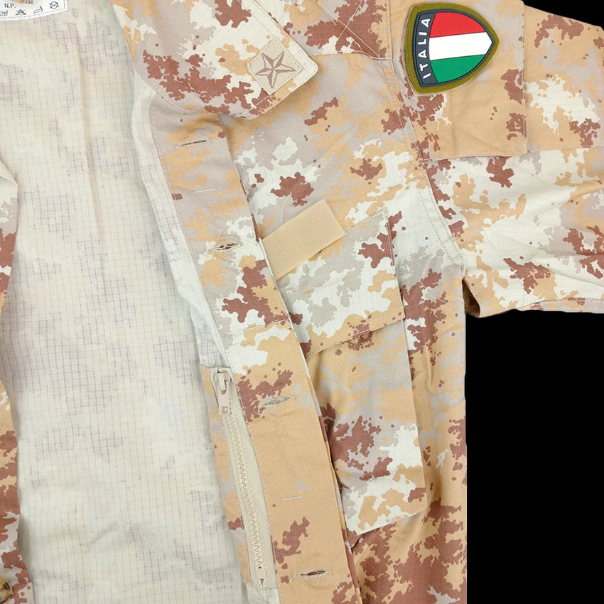 These Italian desert shirts come in a pretty standard military cut - 2 chest pockets, 2 shoulder pockets & rip-stop material. Various hook & loop patches adorn these shirts, namely name tags above the chest pockets and dual shields on the arms. Don't fret about mismatching vegetato again and grab em while they're fresh!