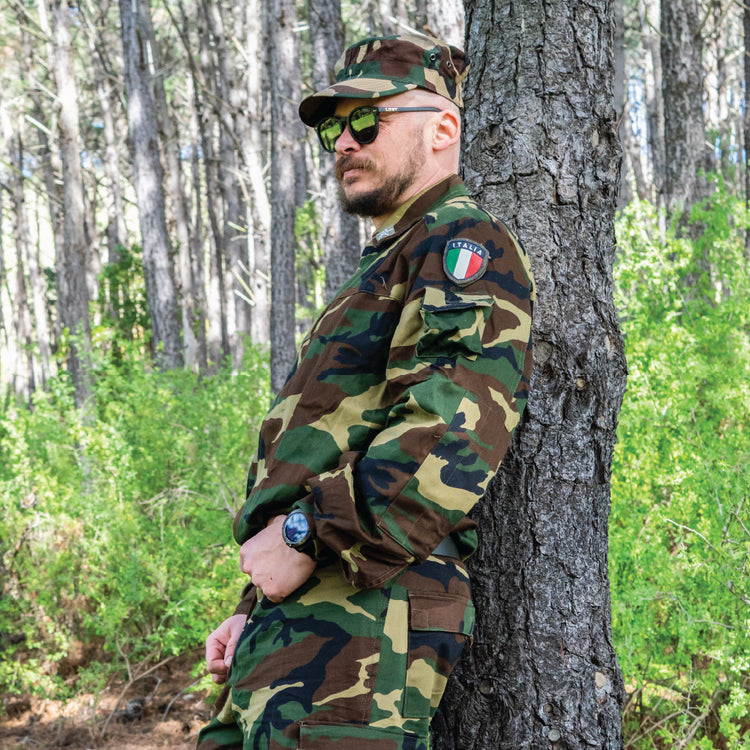 The Italian Army Mimetico Roma 90 camouflage combat shirt is a durable, lightweight military top designed for field use. Featuring the distinctive Roma 90 camo pattern, it provides excellent concealment in woodland and mixed terrain but more importantly is extremely similar to US M81 woodland - nice. Some of these may not include the hook & loop Italia patch to the shoulder, but most do.