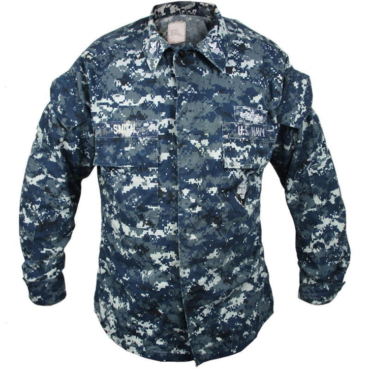 The US Navy adopted the NWU Type I (Navy Working Uniform) during the late 2000's for both on and off-shore use. NWU Type I imitates the Marines and US army's digital pattern but primarily using blue and grey colours. This may blend in well with the ocean, but not on land so much - either way they are a cool looking pattern!