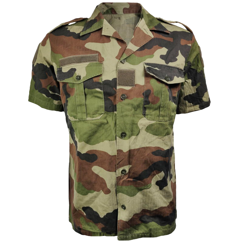 In the 1990's, the French military released this universal camouflage pattern for use in Europe—which they ingeniously named "Centre Europe" (CE). Now you can get this pattern on a genuine issue short-sleeve shirt! This shirt is made from a light-mid weight, cotton based fabric to keep you cool during summer and hot weather activities. The colours can vary with manufacture and age, as shown in the picture.