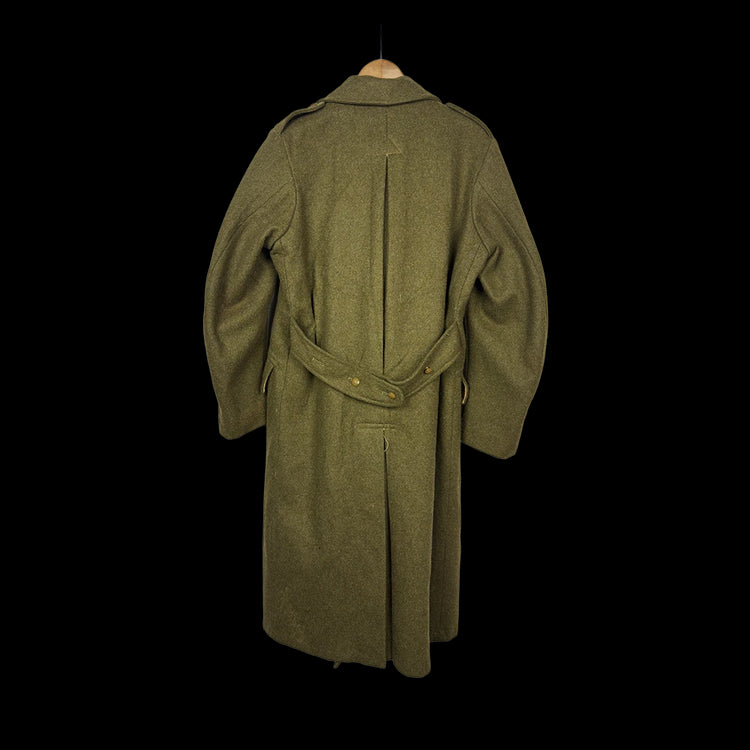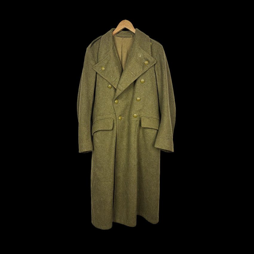 British Army surplus wool greatcoat manufactured in 1952. Double-breasted construction featuring original British General Service Corps buttons. Issued for dismounted personnel and produced under the 1951 Pattern system.