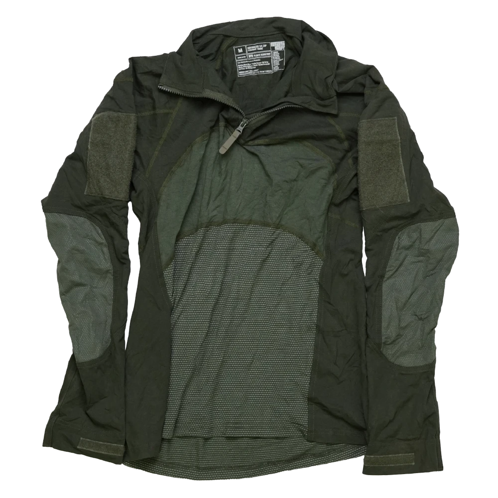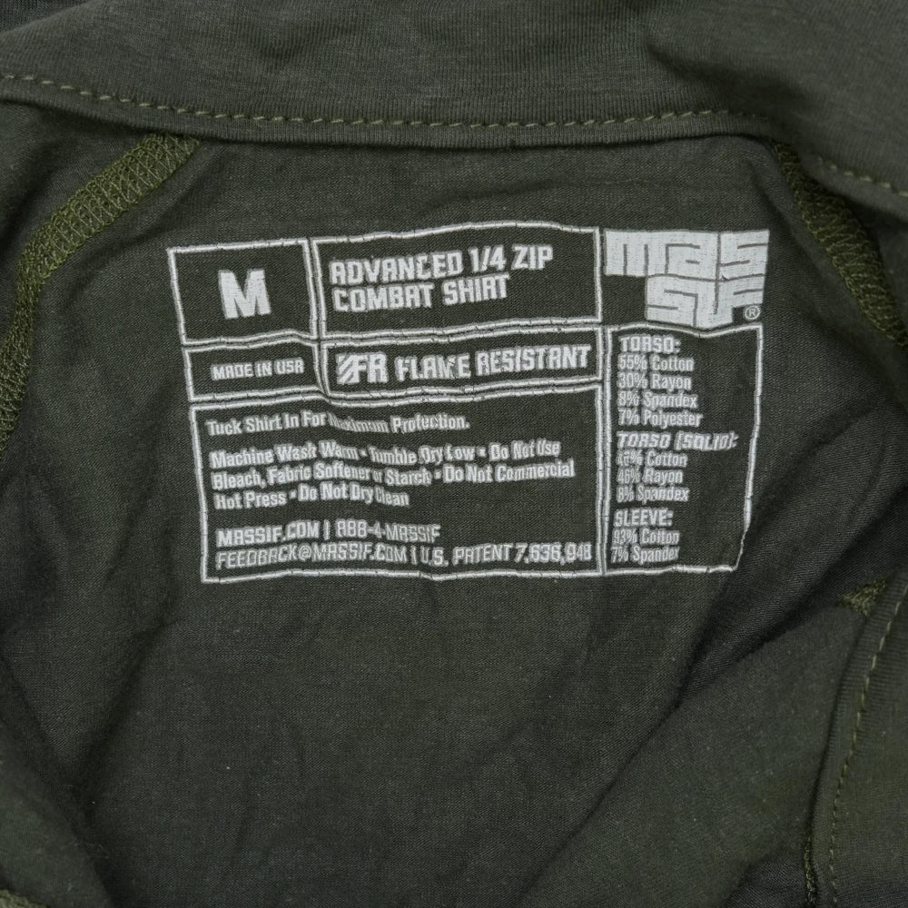 Massif Advanced 1/4 Zip Combat Shirt in olive drab. Features a quarter-zip front closure and combat shirt construction with reinforced sleeve panels.