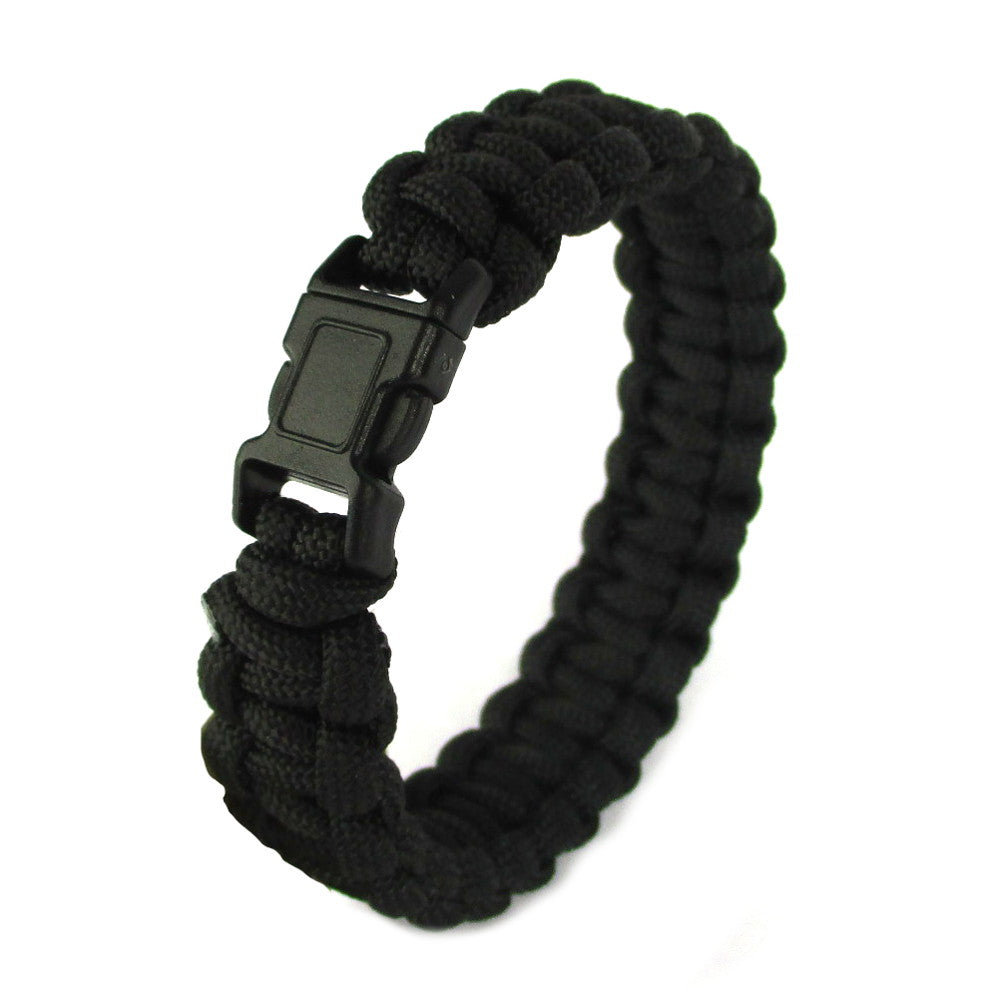 This paracord survival bracelet is an essential item for any outdoor enthusiast. Several feet of strong parachute cord wrap down to a 15mm wide bracelet which fastens around your wrist with a buckle. There are countless situations where this could be used while you're camping, hiking, hunting, or fishing. Use it as a lanyard, boot lace, fishing line, zip puller, or any other uses you can come up with. Be sure to take one of these survival bracelets on your next adventure!
