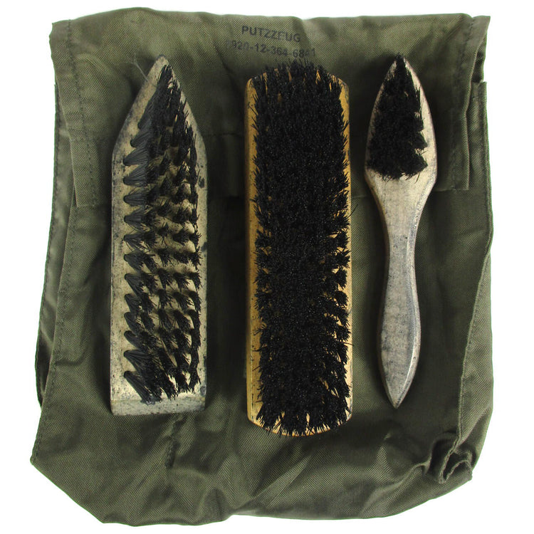 This genuine German Army shoe cleaning kit is a great addition for anyone wanting to take care of their boots. The handy little pack you're looking at features a variety of brushes to keep your black shoes and boots shining. All of these items come with a compact olive drab pouch, making storage and transport easy.