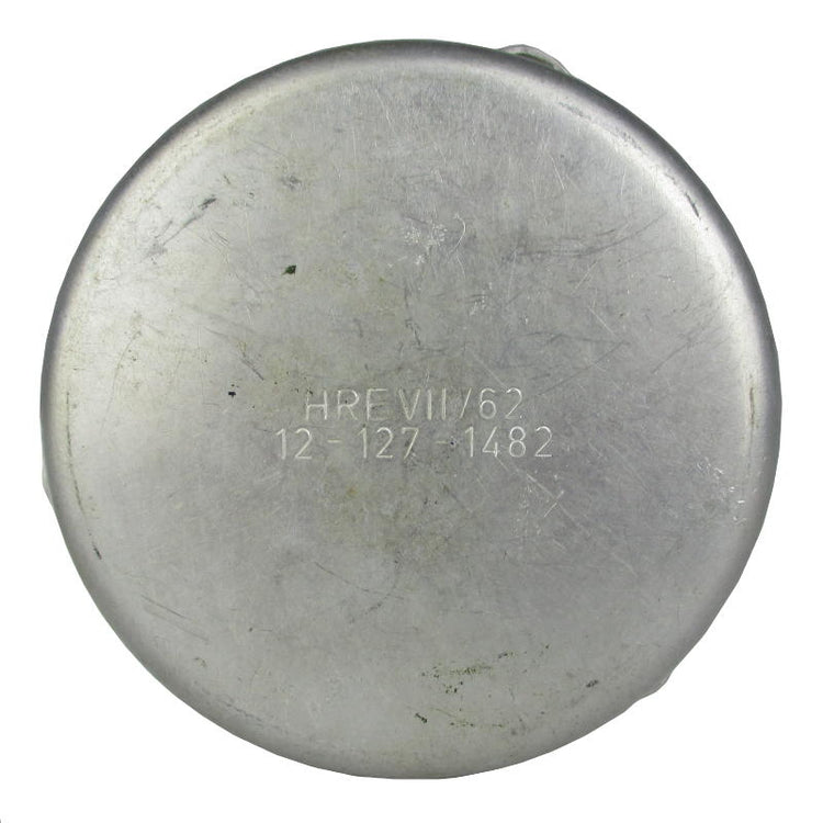 Made of Aluminium these are robust and hard to dent. The lid twists on tightly and has a rubber seal to keep it air tight and the contents fresh. The bottom half of the tin has a plastic bowl you can remove if you wished to store something else such as tobacco. The dish lid has a Bundesadler eagle imprint and on the bottom on the tin it has the NSN number.