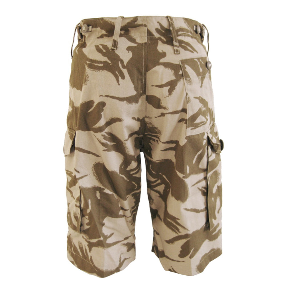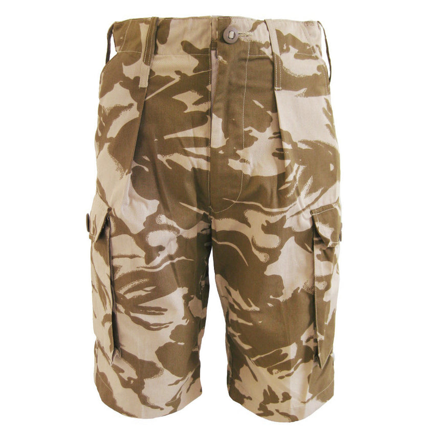 Keep cool and stick out this summer with these genuine British Army 95 desert camouflage shorts. The pants main feature apart from their striking camouflage is the two main cargo pockets. They can fit anything from small drinking bottles to wallets and be buttoned securely. Like any decent pair of shorts they have two front pockets and a buttoned rear pocket as well. Donning these are easy - they come equipped with a zipped fly, very large belt loops and a draw cord.
