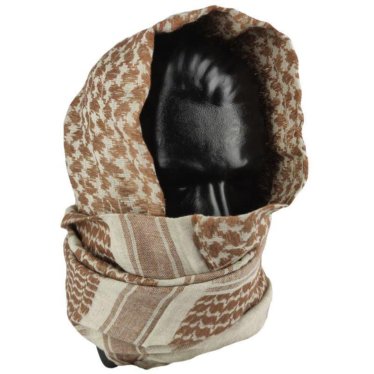The shemagh is a versatile piece of material that is used to make a simple head wrap covering. Shemaghs have been used in many desert operations to breakup an individuals outline, conceal weapons and protect the wearer's face and neck. In the Middle East, different colours and patterns represent groups and rankings of troops or civilians. A useful piece of cloth for covering up in the hot sun or concealing yourself in paintball and airsoft.