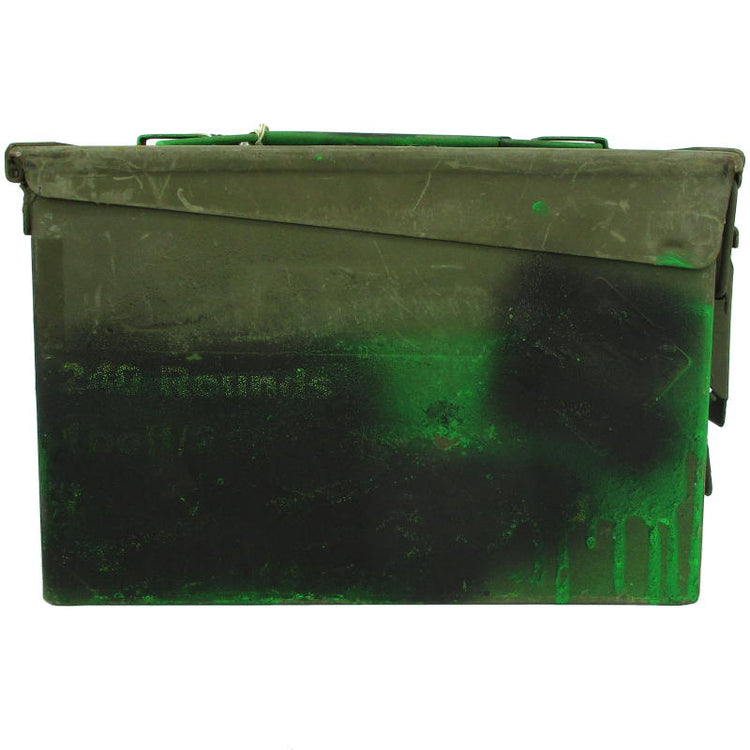 The US military previously used these ammunition boxes to store 30 calibre rounds for machine guns. These ammo cans have seen much better days and have been subject to the elements and heavy handling by the Army. Despite the incursion of rust these still have a water resistant rubber seal for keeping the contents dry. A collapsible handle makes it easy to carry and stack more ammunition boxes on top. Ideal for storing tools, small components and spare parts.