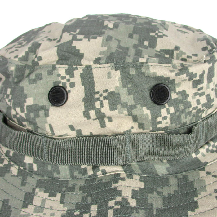 Boonie hats are designed protect against harsh sun rays and pouring rain. The original boonie hats that were issued to the U.S. Army were named Jungle hats. Australian's previously called this design of hat a 'giggle hat'. Although they are now more often referred to as a bush hat. This particular boonie hat features the UCP (Universal Camouflage Pattern) that was the previous standard camouflage pattern of the Army Combat Uniform for the US Army.