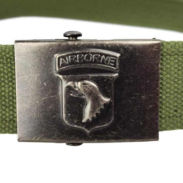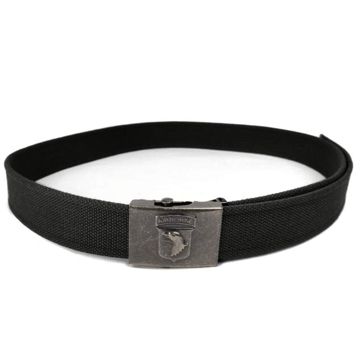 The 101st Airborne Division is a specialised infantry force within the US Army conducting air assault operations. This elite group is also known as the Screaming Eagles. While you may not be ready to Rendezvous With Destiny, you can still win the loose-trouser battle with this Screaming Eagles belt. Insignia of the 101st Airborne Division adorns the solid metal buckle which has been given a rough finish for a battle-worn look. The Autogrip buckle prevents belt slippage, ensuring a secure fit during any swift maneuvers you may be pulling.