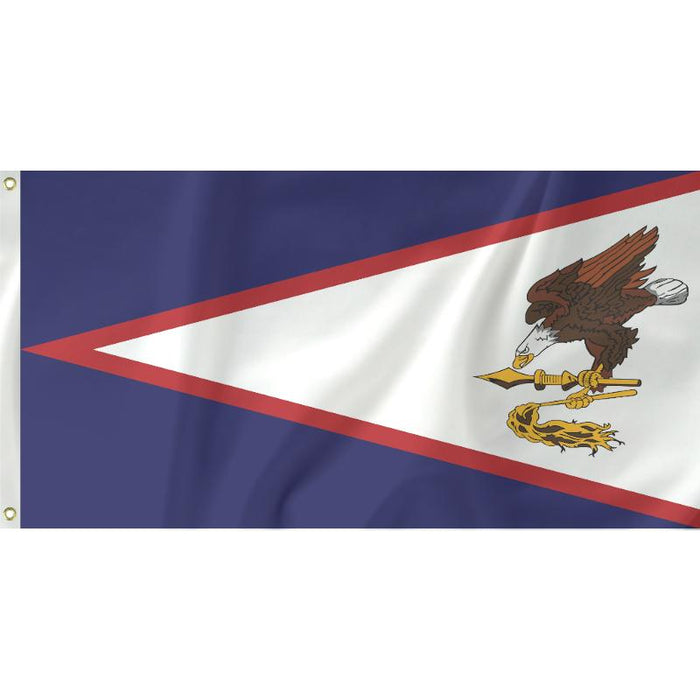 American Samoa adopted their flag in 1960. The flag sports navy blue background with a red bordered white triangle and an American eagle holding a Samoan war club.