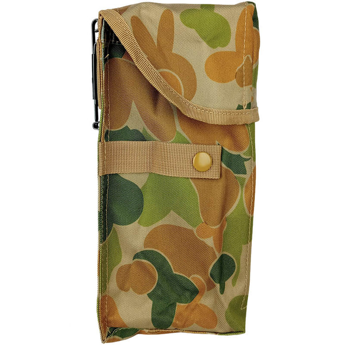 Are you constantly laying down rounds with a SAW and need to keep her fed? These pouches will carry a spare drum no problem! A quick release clip makes reloading easy and can be adjusted for retention. Made with a tough polyester build backed with a internal waterproof PVC lining will help ensure the contents stay dry. If all else fails (or you like swimming) the pouch has drain hole grommets to release water. Attach one of these bad boys to your ALICE webbing today!