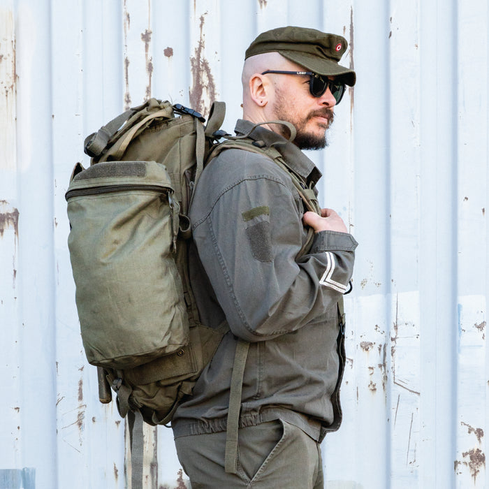 These packs from the Austrian Army were part of an effort to modernise the Austrian army's KAZ03 equipment. The intent with all the original parts was to have a pack to wear over and integrate with your webbing. If a soldier came under contact while on the march, he could quickly hit the release dropping his pack and take the fight to the enemy. Although some of these parts are missing, these still make a fantastic stand alone pack for the avid hunter or hiker.
