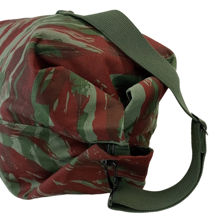 Benin has had no shortage of internal & external conflict from varying political forces over the last century. The country also has a strong French connection - Benin came under administrative control by France up until the 1950s. It should be no surprise that some French camo influence has kept up with Benin's military equipment. These duffel bags covered in a French like 'lizard camo' have come brand new from our supplier in France. It would seem France is still supplying much gear to former French controlled Africa.