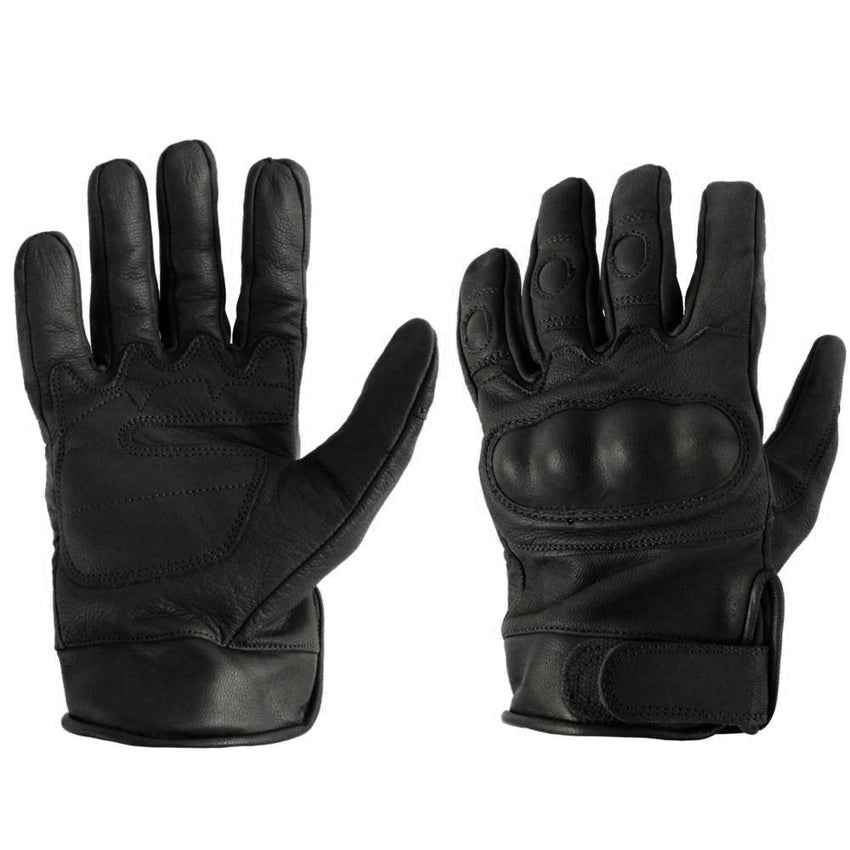 The leather palm offers durability and grip to confidently complete the task at hand. Further protection is added with the reinforced knuckles (excluding the index finger and thumb) made from polyacrylic and EVA foam. This shields the knuckles from strikes and impacts. Finally, you can quickly fit and remove the glove with the adjustable hook & loop strap. Ideal for working around machinery or protecting your knuckles in paintball.
