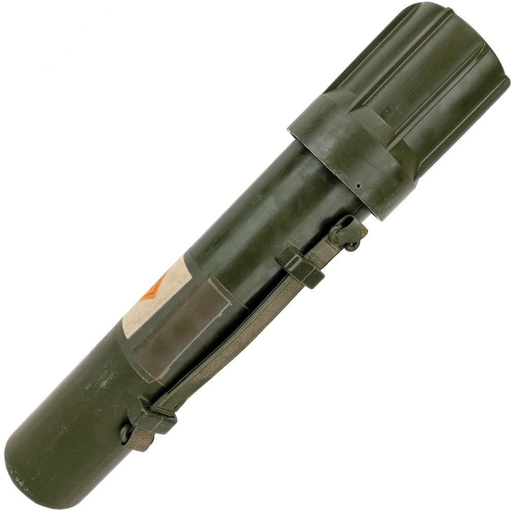 The humble mortar as overlooked yet potent as they may be - are nothing without being fed! The British Army use these tubes to transport their 81mm mortar rounds around the battlefield safely. Built with a very robust thick plastic, they also remain lightweight (bar their intended contents) to help lug them around. The lid screws off in one twist and has rubber O-rings within to remain watertight. The bottom of the inside has slots intended for the tail fins of a round to sit firmly in place without wobble.