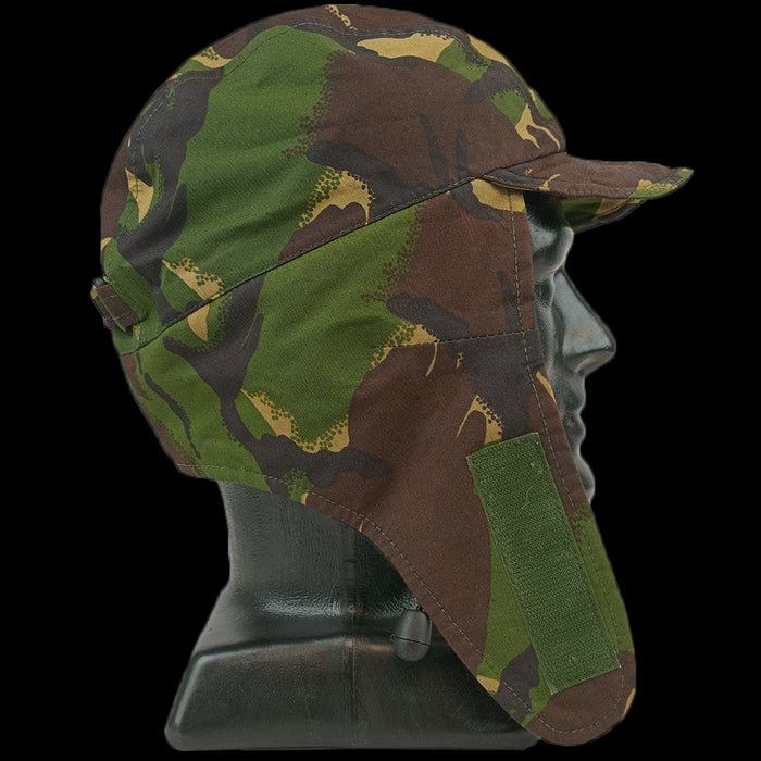 This hearty wee DPM cap is primo for when it's cold and wet out. Lined with fleece for warmth and a waterproof Moisture Vapour Permeable (MVP) membrane (like a British Gore-Tex). This MVP layer helps garments shed moisture from sweat while keeping the wet stuff on the outside, out. The peak is wired for the wearer to bend into all kinds of wacky and useful shapes.