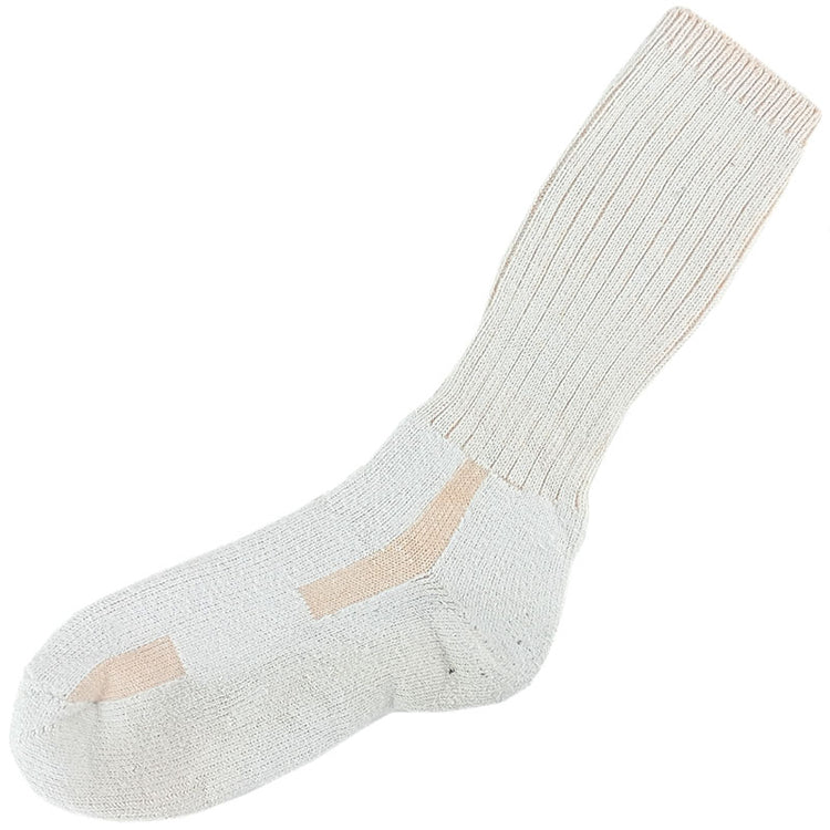 Pre-loved and still kicking! If any sock can rise above the crowd its the humble British Army sock. These khaki socks are designated as 'desert warm weather' socks made from majority polyester to help let your feet breathe. Lightweight, comfortable and full length they will fit most boot heights. Ideal for hunters, farmers, campers, fishermen and airsofters who need to wear socks with boots that are ready to get stuck in.
