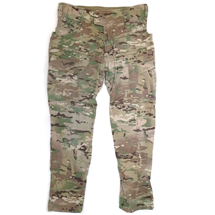Ex-British Royal Marines issue Crye Precision G4 field pants in multicam. Has two large repairs on the backside (see photos).
