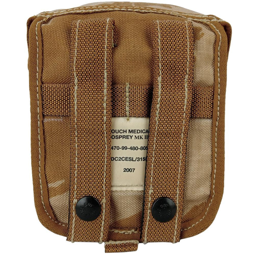 Can't play soldier without dealing with the casualties - these Osprey pouches are what the British Army was issuing to its troops during the 2000's. Designed to carry basic first aid supplies, these pouches have 2 organized slots internally ideal for quickly accessing tourniquets. These also have a decent sized main compartment that can be used for general storage. With MOLLE backing you can attach these to any modern tactical surface. Complete in a tough nylon construction and covered with that awesome desert DPM camouflage pattern!