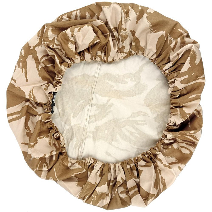 These packs are what the British Army issued to their patrol packs in desert environments. Most of these come from the mid to late 2000's and haven't seen any use since the Army transitioned to MTP fairly quickly. Intended to both better conceal soldiers packs as well as keep dust or other debris from entering their pack, these covers are made from pretty thick majority cotton material. A thick internal bungee cord runs around the rim to hold it securely in place around your pack.