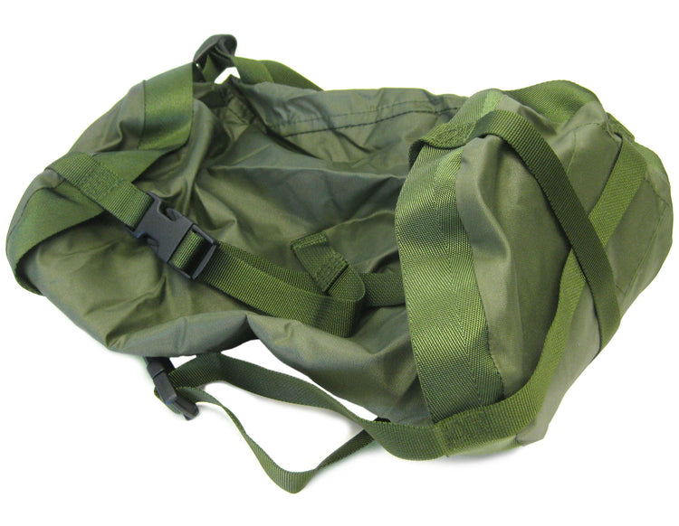 Once the frame is on, you can adjust the size with the pull cords. The fact that the frame doesn't take over the whole sleeping bag, much like a carry bag would, means you can easily attach it to gear, vehicles or packs. This cram sack is made for lightweight/jungle sleeping bags, meaning you can't fit something like our arctic sleeping bag inside.