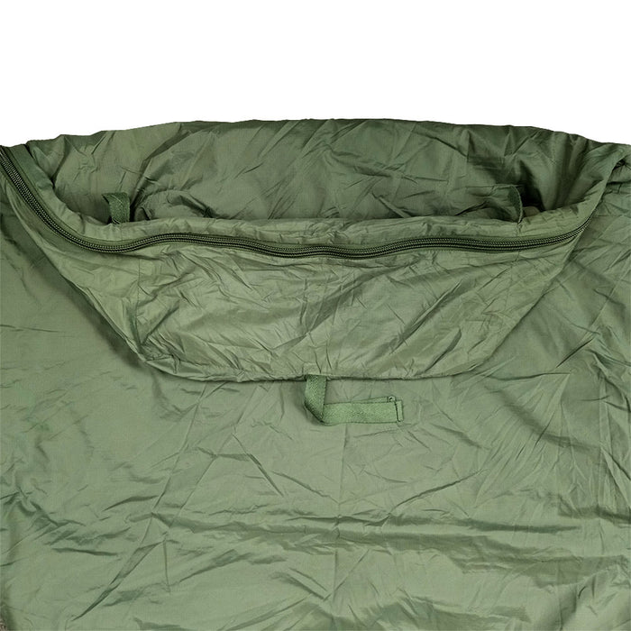 This lightweight fellow has a storable, zip mesh face covering - perfect for biting insects - which covers the opening. Inside are 2 mesh pockets to keep your bits close. Fabric ties integrate with outer sleeping bags when needed. Like all sleeping bags, adding a sleeping bag liner can boost warmth capabilities further while reducing the need for washing, prolonging the life of your sleeping setup. Complement with a British Army outer bivy bag for waterproofing and try out your system before taking into any serious conditions!