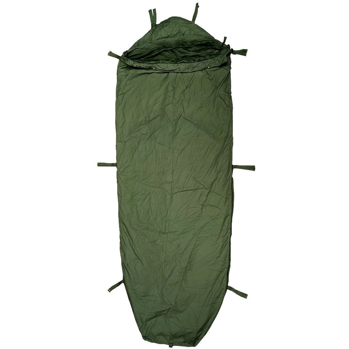 This lightweight fellow has a storable, zip mesh face covering - perfect for biting insects - which covers the opening. Inside are 2 mesh pockets to keep your bits close. Fabric ties integrate with outer sleeping bags when needed. Like all sleeping bags, adding a sleeping bag liner can boost warmth capabilities further while reducing the need for washing, prolonging the life of your sleeping setup. Complement with a British Army outer bivy bag for waterproofing and try out your system before taking into any serious conditions!
