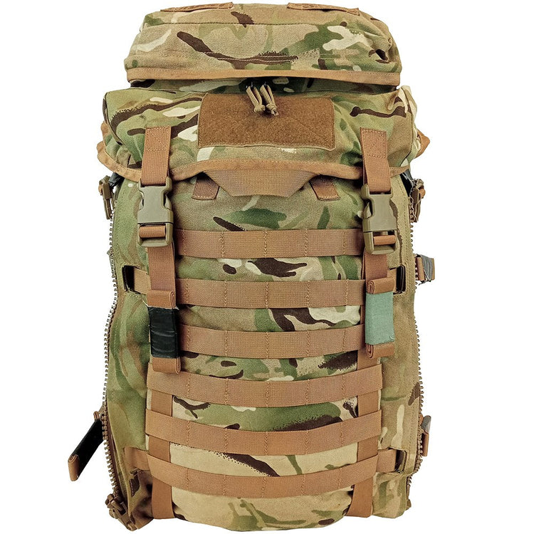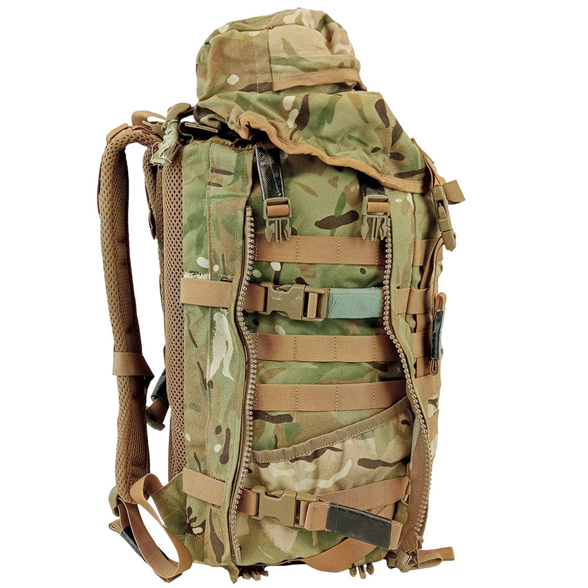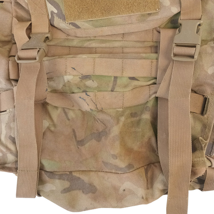 As Value Grade items these packs tend to have small holes, broken or missing clips and stains. They may also have other small damages but still with plenty of features to aid your treks. MOLLE to the front and sides allows you to customise your loadout with extra gear or pouches. And if you're one of those lucky ducks with the MTP side pouches, chuck those on for even more storage and compartmentilisation. The nylon construction and sturdy build means you can biff these through all the brambles you want. Handy lid and open side pockets, stowage collars and compression straps are a nice touch on such a heavy duty piece of gear. A wicked, medium sized bit of kit. Grab one if you are lugging about a decent (but not a huge) amount of gear and handy with a bit of DIY.
