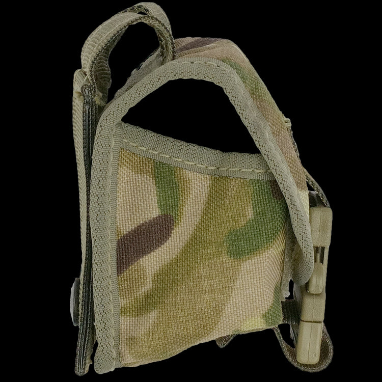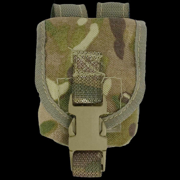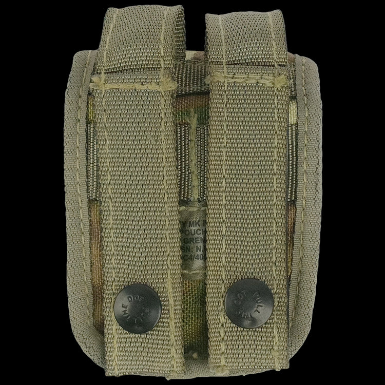 Unissued, like new condition! This pouch was designed for carrying British grenades but the handy size can accommodate your smaller items too. Keep handy things close such as a boo-boo kit, roll of electrical tape, emergency poncho or a packet of trail mix. With MOLLE attachment and designed for use with the Osprey MTP combat vest, these handy wee pouches are a great addition to any kit or belt.