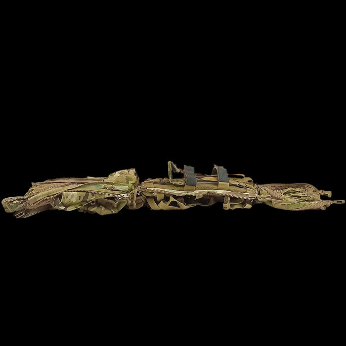 Featuring a breathable mesh top and front (not waterproof or lined), a padded back, adjustable shoulder harness, floating lid with pocket, PALS webbing, heavy‑duty YKK zips and internal load‑securing straps. The whole pack can be laid flat by unzipping the sides.