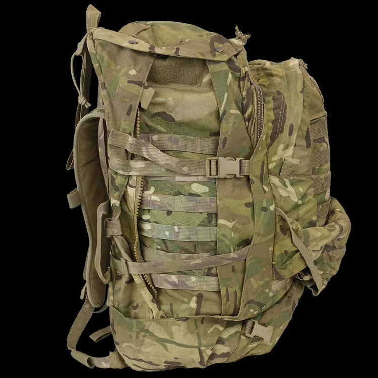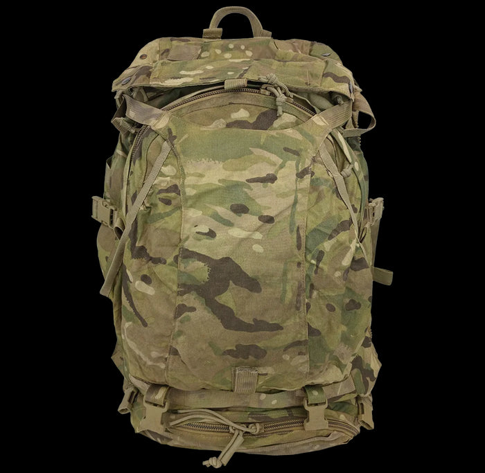 Part of the current issue British Army gear, the Virtus 90L Bergen - GU version! Made to be worn with Source's Dynamic Weight Distribution System (basically a bionic spine that can disperse weight from the back to hips - not included), this pack features no waist belt and an interesting configuration.