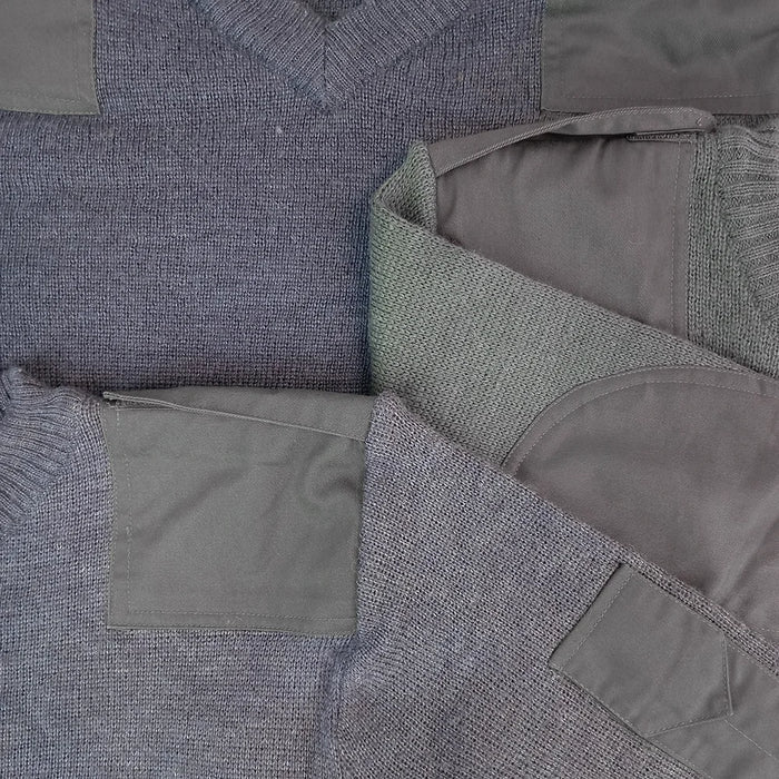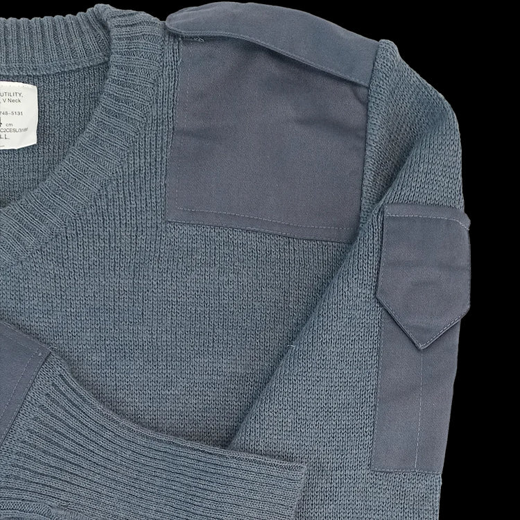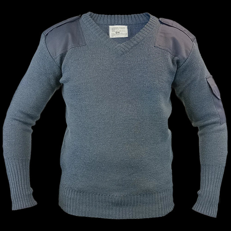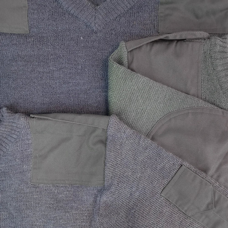 Cant let the Navy and Army have all the goods, the British Royal Airforce has a wool blend jersey too! These ''Utility'' versions do not have the wide ribbing weave like the commando style, but with a nylon blend, they are still nice and form conforming. These are RAF blue too of course, which is kind of like a dirty sky blue - though somewhat inconsistent (see image for an example of blues). The reinforced areas are really the only hint that this cosy jersey wasn't originally for the general public but it still blends in to civilian life just fine.