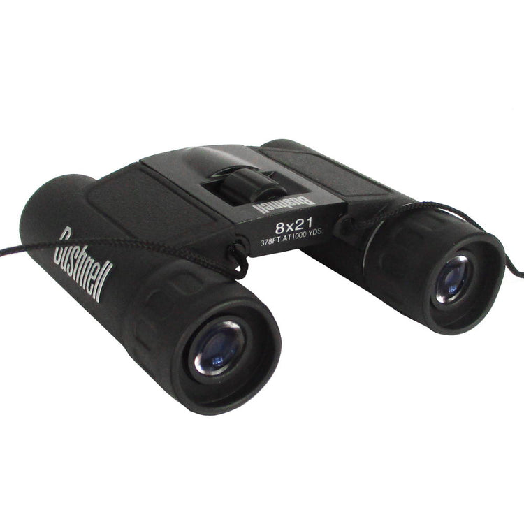 A compact and sleek pair of 8x21 Binoculars from Bushnell®. Fully-coated optics give these binoculars increased brightness with an 8x magnification. It has an ergonomically placed centre focusing mechanism, giving quick, easy focusing. The durable rubber provides both grip and shock resistance. An attached neck strap gives you quick access to the binoculars while on a nature walk or hiking