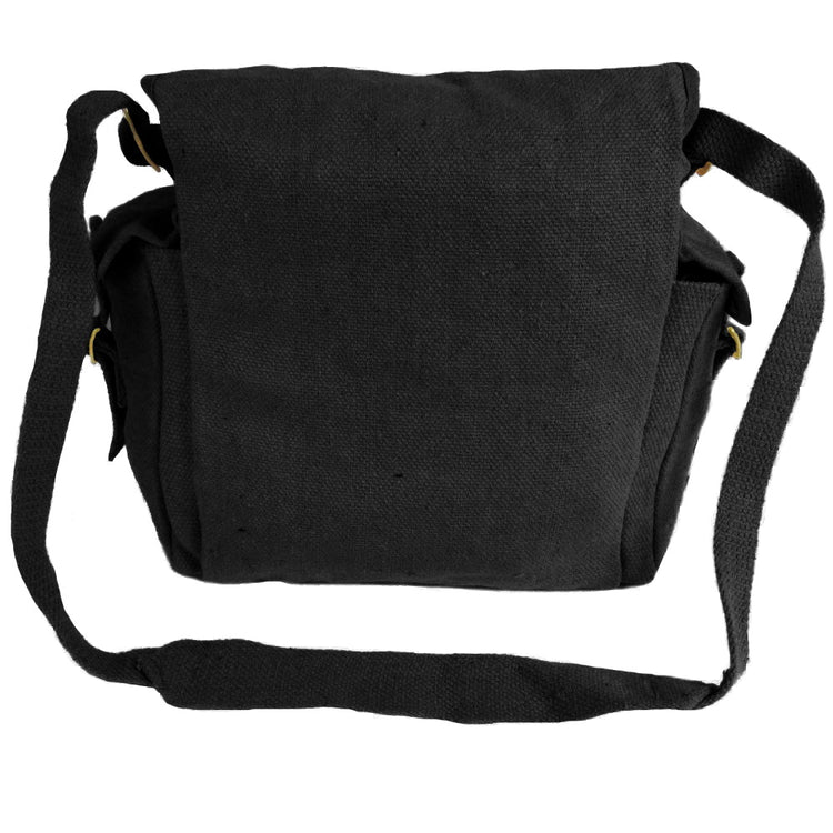 If you're looking for a great everyday bag, then this one is for you. This large canvas haversack is perfect for daily use, the large main compartment and additional side pouches are ideal for carrying your lunch, modern day gadgets, even a rolled up jacket. The cotton canvas construction is complemented nicely with the gold coloured metal tabs. A trendy bag for town and nice and versatile for a quick walk in the wilderness.