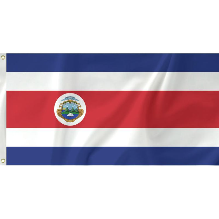 The current Costa Rican flag was based on a design from 1848. Over many years it has had slight changes on positioning until 1998. The blue colour stands for the sky, opportunities, idealism and perseverance. The white stands for peace, happiness and wisdom. The red colour represents the blood spilt by its people in defense of the country and doubles towards the warmth of the people.