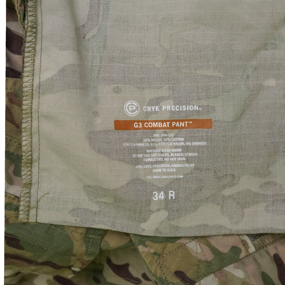 Crye Precision G3 Multicam Combat Pants in 34R. Made in the USA from a 50% nylon, 50% cotton blend with stretch panels.