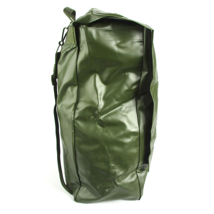 Here is a great water resistant offering from the Czech Army. This is a good general purpose bag that will keep out the rain. A large main compartment and 2 smaller ones will fit all of your gear. Two narrow shoulder straps are attached to the pack with spring hook attachments. These may have some marks or corrosion from storage but appear in good shape. Keep your kit dry and slap it in one of these.