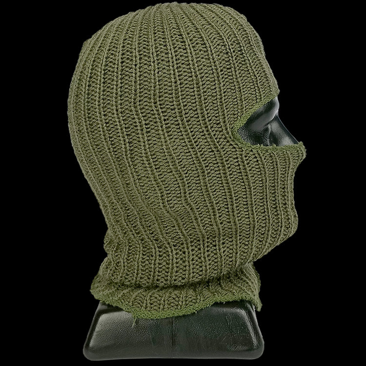These knitted one hole balaclavas from East German are known for breathability and comfort. In unused condition, the DDR likely collapsed before these were able to be circulated.
