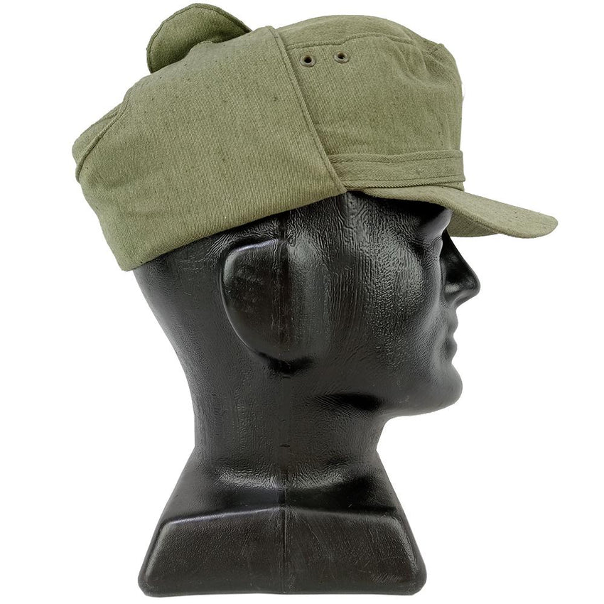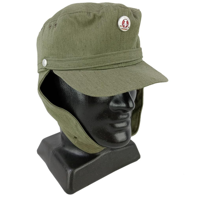 These caps were issued to the state militia and also regular NVA troops in the hundreds of thousands. Mass produced, these caps maintain a good amount of utility and ruggedness you would expect from military surplus. The inside has a light amount of padding for some insulation along with fold down ear flaps to take the chill off. A bendable peak shades the users eyes from the sun and also has ventilation holes to help your hair breathe. Topped off with a classic East German badge sewn onto the front.