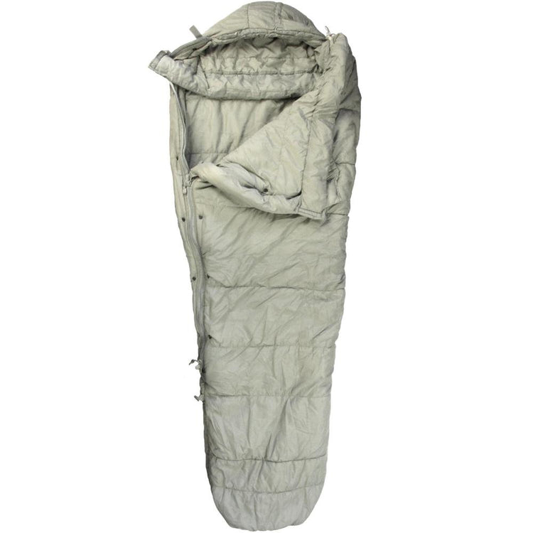 The ECWS (Extreme Cold Weather System) is a modular sleep system from the U.S. Military. The system is made up of 3 items - the intermediate sleeping bag, patrol bag, and bivy bag. When all 3 bags are used together they are rated for use at -40 degrees Celsius. This is just the Intermediate sleeping bag which can be used on its own, rated at -23 degrees Celsius. It is worth noting that these ratings are based on what temperature you could survive in for a certain amount of time (4 hours), not what temperature would be comfortable.