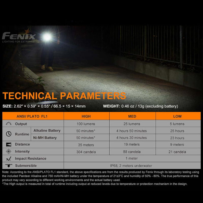 Weight: 13g (torch weight excluding battery)