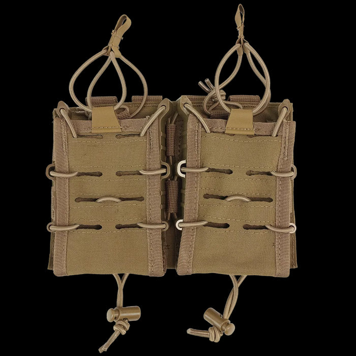If you hate flaps and lids, taco style mag pouches might be more for you. Maybe you just have a variety of different magazines and don't want a new rig set up, every time you use a different rifle. Intended to fit M16 style mags but because of the flex in the design, this pouch will fit most common assault rifle mags - adjust the width and retention strength of the pouch with elastic cord.