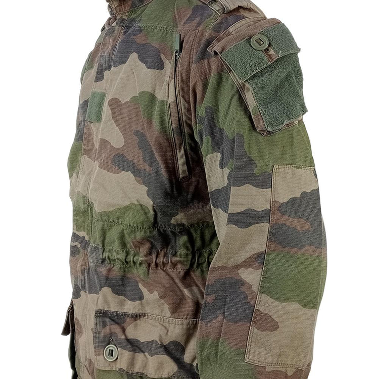 These jackets are what the French Army were issuing mostly during the 2010's with fairly typical modern military features. Pockets on the shoulders, chest and waist allow for a good amount of carrying capacity should you need it. A full length zipper adorns the front with a hook & loop secured storm flap to protect it. A welcome feature is both the bottom of the jacket and the waistline are adjustable so you can make these pretty form fitting. Made from tough rip-stop material these jackets will take a fair amount of abuse.