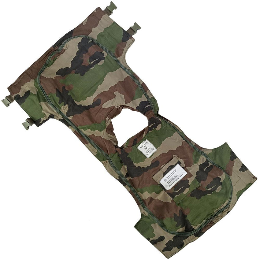 Here we have a genuine issue French CE (Central European) camo vest. Originally these would be filled with a shrapnel resistant layer but are not included with this batch. Both the front and rear have small pockets for inserts (not included) much like the British vest. A pouch sits at the front with a window to display your blood type with a paper card (card not included). The 'jacket' is donned by inserting your head first and securing 2 plastic clips on both sides which are adjustable.